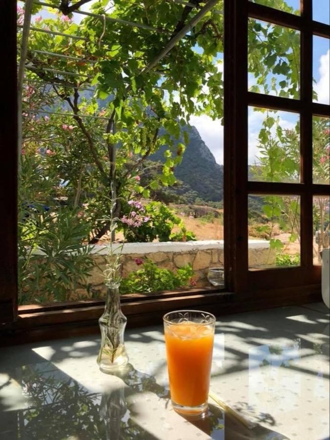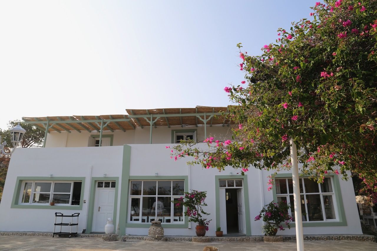Det er flotte uteområder du kan slå deg ned på å bare kose deg med atmosfæren og utsikten. Eller kose deg med gode samtaler med felleskapet. Det oser av gresk sjarme her.